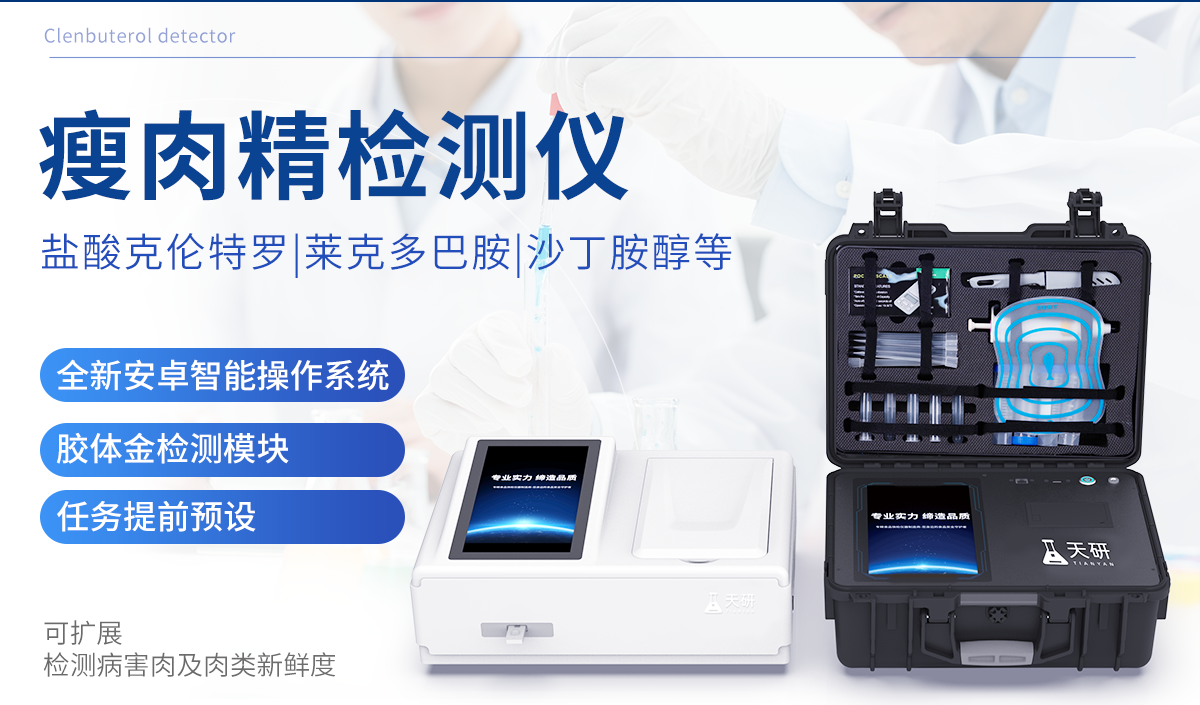 瘦肉精檢測儀可現場快速檢測鹽酸克倫特羅、萊克多巴胺、沙丁胺醇、己烯雌酚、喹乙醇等。儀器預留其他項目檢測程序和端口,根據日后需求可方便的自主增加檢測項目。日后可升級為檢測抗生素、獸藥殘留、動物疫病、病害肉、的綜合類型儀器