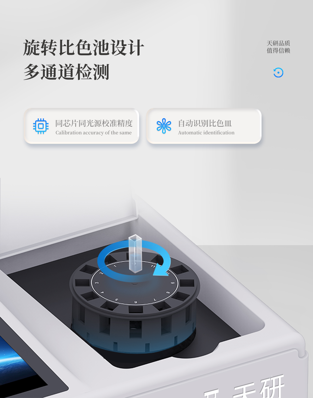 | 儀器采用臺式一體化系統檢測技術,將分光光度模塊、新型農殘檢測模塊、數字化管理模塊、無線通訊模塊高度集成于一體,支持檢測200種食品安全檢測項目,同時預留升級檢測方法。 | 儀器檢測模塊標準化、智能化,可隨意自由組合。檢測箱體內置多個標準檢測單元,檢測模塊可以調整配置。 | 儀器采用全新安卓智能系統,主控芯片采用 ARM Cortex-A7,RK3288/4核處理器,10.1寸高清液晶觸摸豎屏,更加**的UI交互界面,運轉快捷;儀器配備無線通信模塊: 4G(APN)通訊模塊、Wifi模塊,藍牙傳輸,同時具有雙USB接口以及RJ45接口能以多種方式實現數據保存和數據傳輸功能。 | 創新檢測模式: | ★檢測通道:≥12通道;采用精密旋轉比色池設計,使用同芯片同光源校準精度,解決不同光源之間的誤差值。1-12通道間誤差0.1%。(**號:ZL202022821055.2) | ★儀器具有自動識別比色皿檢測功能,即:將樣品比色皿放入儀器后,點擊樣品檢測,儀器自動識別比色皿進行通道檢測。 | 進口高精光源: | 高精度進口四波長冷光源,通道配置 410、520、590、630nm 波長光源,一個光源芯片驅動一個光源,誤差極小,每臺設備單獨**校準光源,**比對,同時參照四種不同波段光源全方位覆蓋市面上99%的農殘食品項目檢測。 | 智能化操作系統: | 便捷操作系統:設備檢測時可在同一檢測界面自動對應相關檢測通道一次性選擇1-12個樣品名稱,無須退出界面,節省操作時間。 | 數據集成系統:設備首頁自動統計檢測數據包含:周檢測數據、月檢測數據,全部檢測總數量,均包含檢測總數,合格數,不合格數,以及相關柱形分析圖,對各項檢測數據清晰掌握,無需電腦查詢,更加快捷直觀。 | 項目預設系統:支持添加單個及多個相同或不相同的任務預設,一鍵快速調取,每一個任務分別可以設置不同的樣品、批次、編號、來源、備注、抽樣信息、檢測信息、受檢信息、復核信息等更多信息。無縫鏈接平臺和APP實時查看下發任務。 | 數據監管系統:同步對接監管平臺,數據可局域網和互聯網數據上傳,檢測結果可選擇直接傳至食品安全監管平臺。集成OSS輸出存儲服務、區分設備定向管理應用,進行區域食品安全監管及大數據分析處理與數據統計,檢測區域食品安全長短期動態,達到食品安全問題預估、預警。 | 自定義打印系統:內置全新打印系統,新創自定義打印方式,可按需靈活設置開啟或關閉:產品合格證(國家農業部標準要求),二維碼,抽樣信息、檢測信息,受檢信息、復核信息、抽樣日期、檢測日期等信息的打印。 | 系統遠程更新功能:可定向分客戶分儀器更新系統,按照不同客戶后期實際需求添加項目,無需機器返廠,即可遠程實時升級全新系統,節省時間成本及避免運輸造成設備損壞。 | 儀器主機采用一體化防水、抗壓、防撞擊、防腐蝕箱體設計,同時配備交直流供電,可連接車載電源,可選配大容量充電鋰電池,滿足現場野外檢測需求。 | 安全證書,放心保障:儀器具有中國計量科學研究院校準證書,**認證。 |
