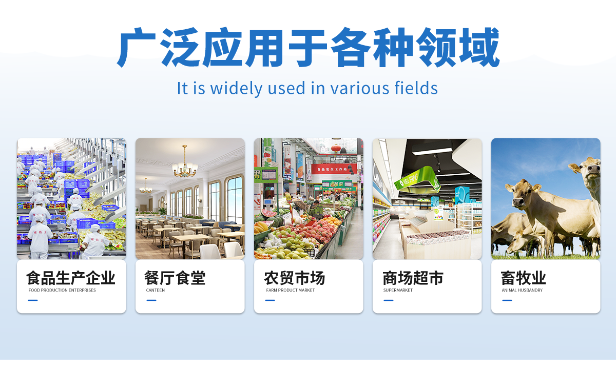 | 瘦肉精激素類(獸藥):鹽酸克倫特羅、沙丁胺醇、萊克多巴胺、己烯雌酚、喹乙醇等 | 抗生素殘留類(獸藥):四環素類、硝基呋喃類、磺胺類、沙星類、喹諾酮類、慶大霉素、鏈霉素、阿莫西林、紅霉素等 | 水產品安全類:孔雀石綠、氯霉素、呋喃妥因代謝、呋喃西林代謝、呋喃它酮代謝、呋喃唑酮代謝等 | 以及病害肉及肉類新鮮度的擴展檢測。 |