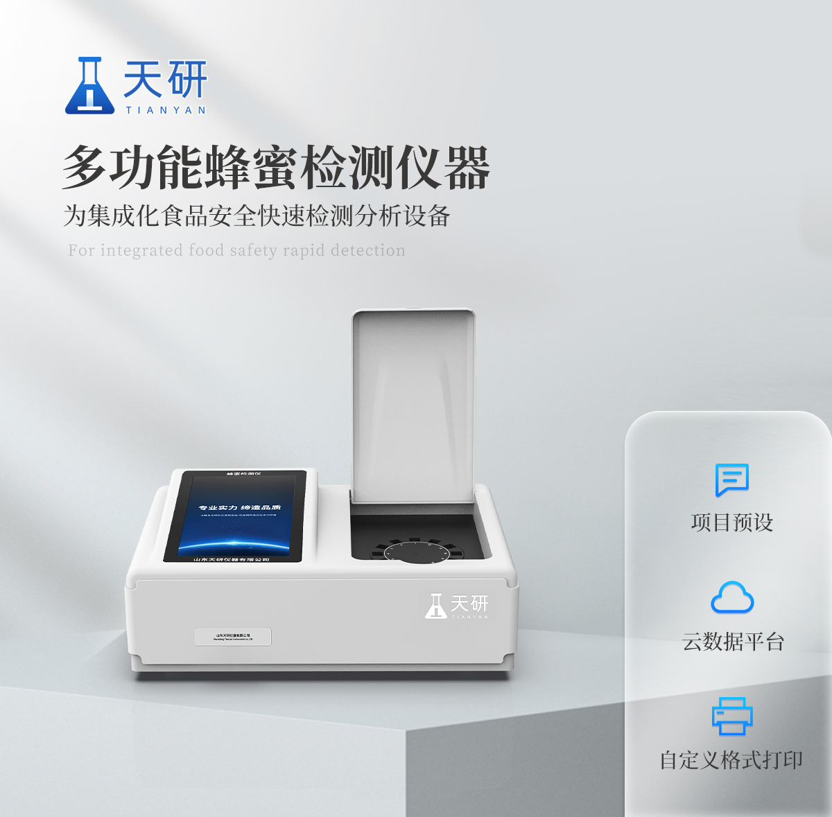 該蜂蜜檢測儀為集成化食品安全快速檢測分析設備,廣泛應用于食藥監局、衛生部門、高教院校、科研院所、農業部門、養殖場、屠宰場、食品肉產品深加工企業、檢驗檢疫部門等單位使用。