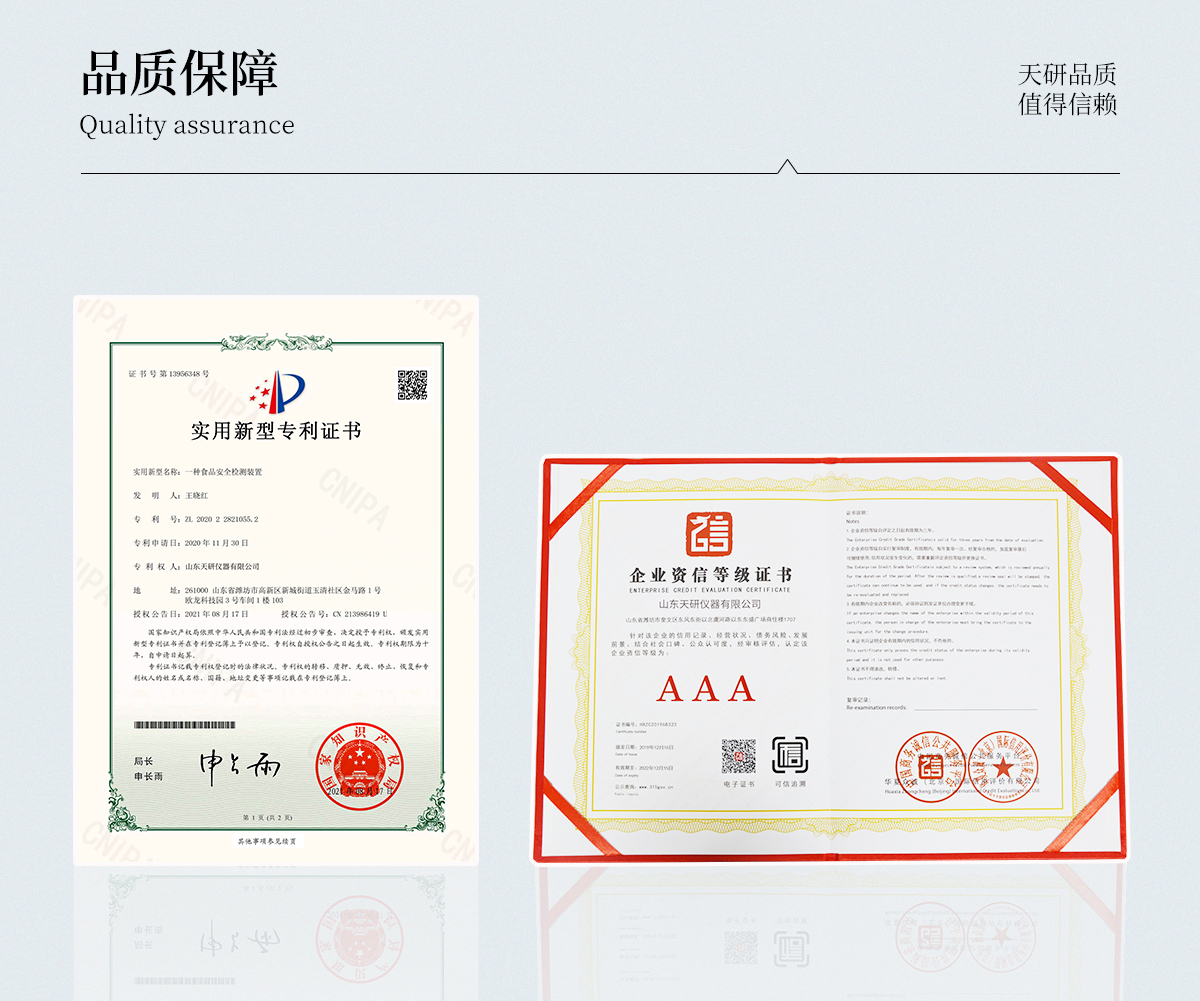 產品詳情:產品簡介:山東天研儀器有限公司生產的農藥殘留檢測儀廣泛應用于主要用于蔬菜、水果、茶葉、糧食、農副產品等食品中農藥殘留的快速檢測,依據國標GB/T5009.199-2003進行檢測,適用于果蔬茶生產基地以及農貿批發銷售市場現場檢測,餐館、學校、食堂、家庭果蔬加工前的安全速測等。技術參數:機器采用全新安卓智能系統,主控芯