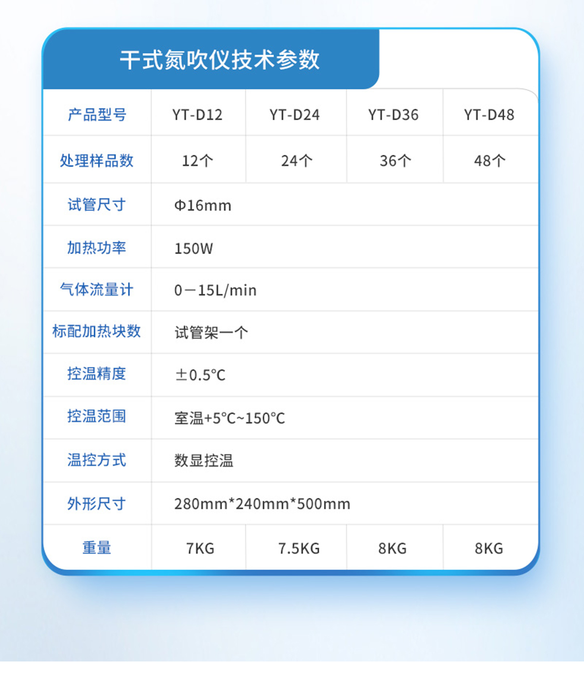 | YT-D12S | 12個 | Ф16mm | 330ml/min/樣品(可調節) | 0-15L/min | 試管架一個 | ±0.5℃ | 室溫---100℃ | 數顯控溫 | 340*200*460 | 600W | 7KG |