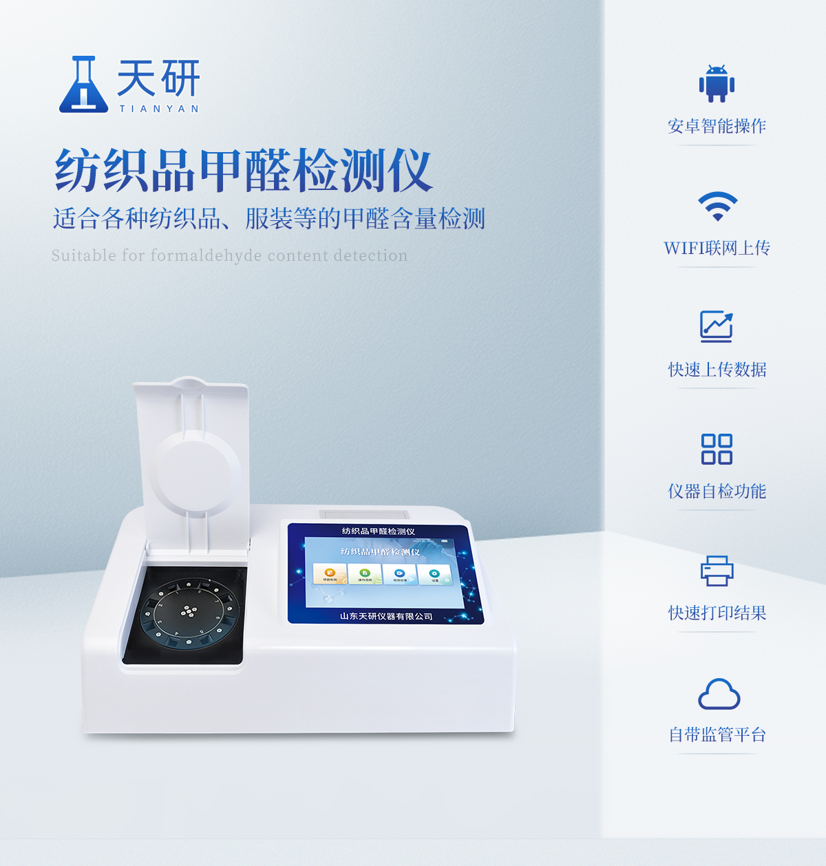 本套紡織品甲醛檢測(cè)設(shè)備滿足紡織品甲醛含量檢測(cè)的中國(guó)標(biāo)準(zhǔn)《國(guó)家紡織產(chǎn)品基本安全技術(shù)規(guī)范》(GB 18401-2010)、《紡織品·甲醛的測(cè)定·第1部分:游離和水解的甲醛(水萃取法)》(GB/T 2912.1-2009), 適合各種紡織品、服裝等的甲醛含量檢測(cè)。