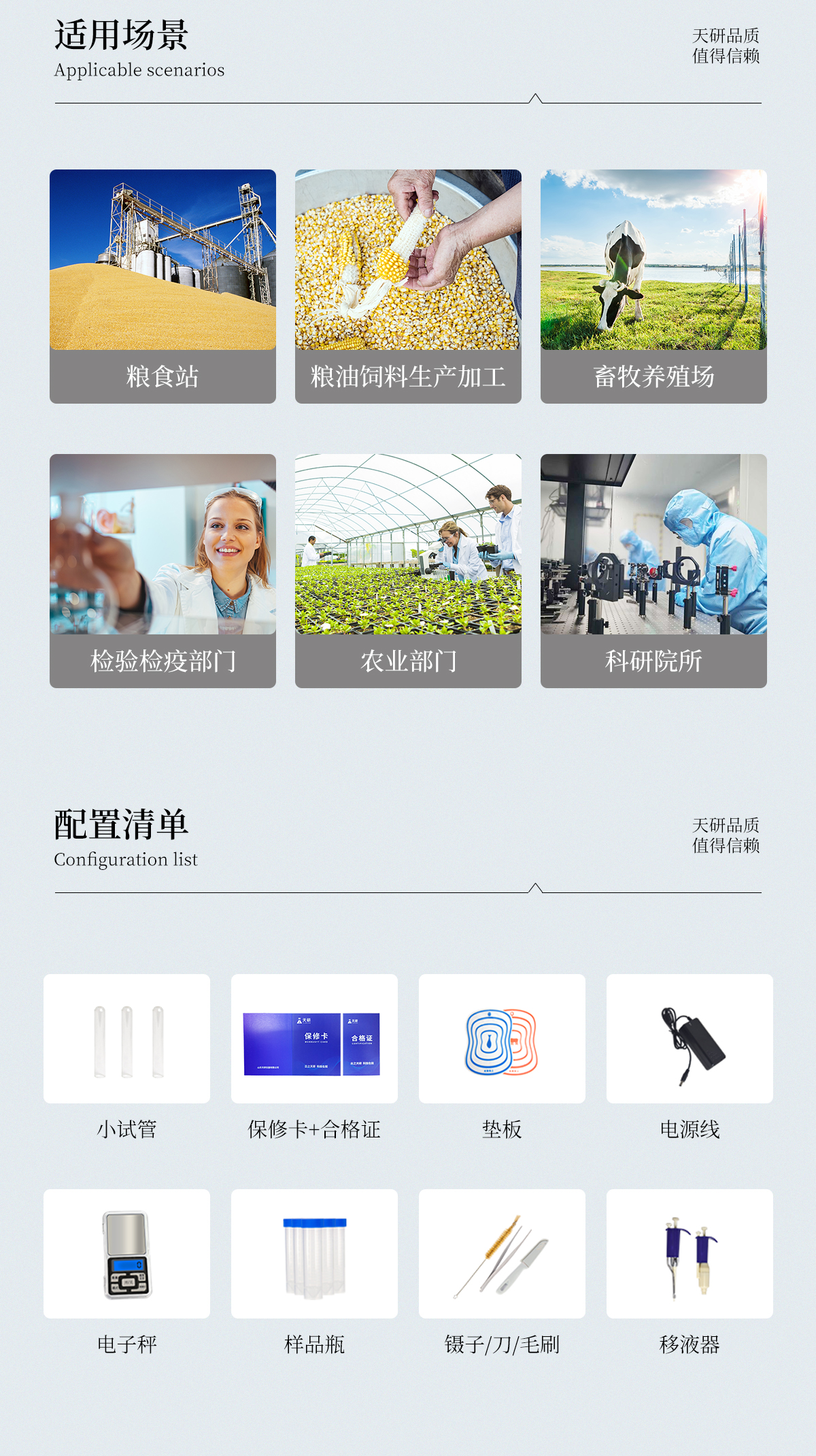 | 瘦肉精激素類(獸藥):鹽酸克倫特羅、沙丁胺醇、萊克多巴胺、己烯雌酚、喹乙醇等 | 抗生素殘留類(獸藥):四環(huán)素類、硝基呋喃類、磺胺類、沙星類、喹諾酮類、慶大霉素、鏈霉素、阿莫西林、紅霉素等 | 水產(chǎn)品安全類:孔雀石綠、氯霉素、呋喃妥因代謝、呋喃西林代謝、呋喃它酮代謝、呋喃唑酮代謝等 | 以及病害肉及肉類新鮮度的擴(kuò)展檢測(cè)。 |