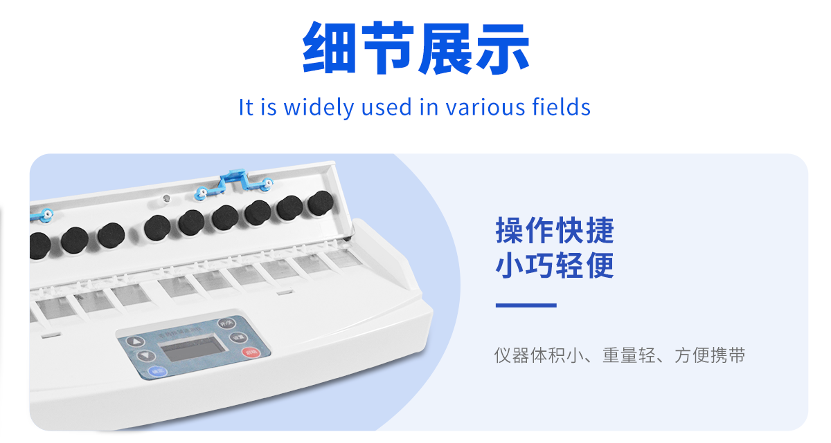 | ◆ 12通道,同時快速檢測,每個樣品由程序控制分別獨立工作,不會互相干擾 | ◆ 儀器體積小、重量輕、無配件,方便攜帶 | ◆ 操作快捷,尤其適合現(xiàn)場使用 | ◆內(nèi)置大容量電池,在無外接電源時可連續(xù)工作4小時 | ◆ 提供完備的附件配置,采用美觀、耐用的鋁合金包裝箱 | ◆ 采用新型儀器結(jié)構(gòu)設(shè)計,體積小,便于攜帶。無機械移動部件,抗干擾、抗振動,檢測精度高,儀器壽命長 |