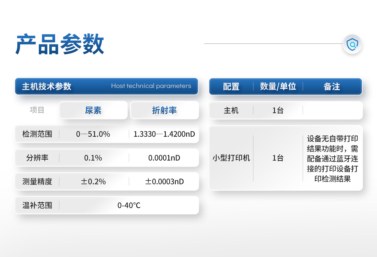| 檢測范圍:尿素0―51.0%;折射率1.3330―1.4200nD | 分辨率:尿素0.1%;折射率0.0001nD | 測量精度:尿素±0.2%;±0.0003nD | 溫補范圍:0-40℃ |
