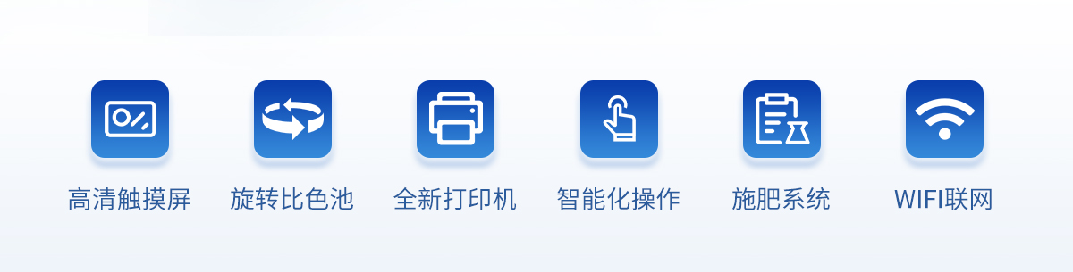 | ★1、Android安卓智能操作系統,主控芯片采用ARM Cortex-A7,RK3288/4核處理器,主頻1.88Ghz,運轉速度更快速,穩定性更強。 | ★2、采用精密旋轉比色池設計(**號:ZL 2018 2 1777724.7),光源一致性更加**,保證檢測精度。 | ★3、12個旋轉檢測通道,一次性可快速檢測12個樣品,極大提升檢測效率,降低檢測成本。 | ★4、采用高精度濾光片技術自主**分析方法(**號:ZL 2020 2 1763837.9),**認證。 | ★5、檢測過程中內置校準功能,智能恒流穩壓,光強自動校準,確保檢測準確度,取得中國計量科學研究院的《校準證書》。 | 6、儀器標配wifi無線上傳、4G聯網傳輸、GPRS無線遠傳功能,快速上傳數據。 | 7、配有智慧云農業平臺,儀器連入無線網絡后,可將檢測數據可選擇性或批量無線上傳,方便用戶進行長期數據管理和可視化分析。 | 8、儀器同時具有USB接口、以太網接口,內置大容量內存,并可隨時用U盤拷貝數據。 | 9、可用手機隨時登錄云平臺在線移動查看歷史數據 | 10、內置作物專家施肥系統,可對百余種全國農業經濟作物、果樹等的目標產量計算推薦施肥量,依據施肥配方科學指導農業生產。測土配方施肥結果可打印,打印內容包含:作物種類、肥料種類、目標產量、需求總量、建議施肥方案。 | 11、內置植物營養診斷標準圖譜,根據各農作物營養缺失的圖片,進行葉面對比,診斷豐缺。 | 12、4波長專業測試冷光源(紅、藍、綠、橙),光源波長穩定,長時間連續工作光源無溫漂現象,壽命長達10萬小時級別,重現性好,準確度高。 | 13、比色池部分采用標準1cm比色皿,無機械位移及磨損,光路測試定位**,有效屏蔽外光干擾,保證檢測結果優于國標要求。 | 14、儀器系統內帶有樣品前處理操作視頻,各種樣品檢測方法點擊視頻模塊即可觀看,檢測人員無需自學說明書,指導教學方便快速,方便新手快速操作。 | 15、內置新一代高速熱敏打印機(無需色帶),打印內容包含:檢測單位、檢測人員、檢測項目、通道號、吸光度、養分含量(mg/kg)、檢測時間、以及二維碼等信息 | 16、高靈敏7寸真彩觸摸屏,采用更加**和人性化操作,高清晰高交互顯示,大程度降低傳統儀器的繁瑣操作和失誤,并取得多項《軟件著作權》。 | 17、內置時鐘功能,方便操作時間記錄,長期歷史追溯。 | 18、可設置多賬戶賬號密碼登錄,**UI交互界面,不同的用戶可自由添加編輯檢測信息,保存后可長期使用。 | 19、GPS功能:可在野外作業時記錄經緯度地點,滿足特殊用戶需求。 | 20、內置低電壓提示功能,可在檢測時明確電量,避免測試數據偏移,同時具有斷電保護功能,斷電自動保存數據,防止數據丟失。 | 21、交直流兩用供電方式,內置大容量充電鋰電池,滿電狀態下可連續工作10余小時,同時可外接車載電源蓄電。 | 22、儀器具有中英文切換功能,可滿足出口要求。 | 23、高強度PVC工程塑料手提箱設計,堅固耐用,便于攜帶。 |