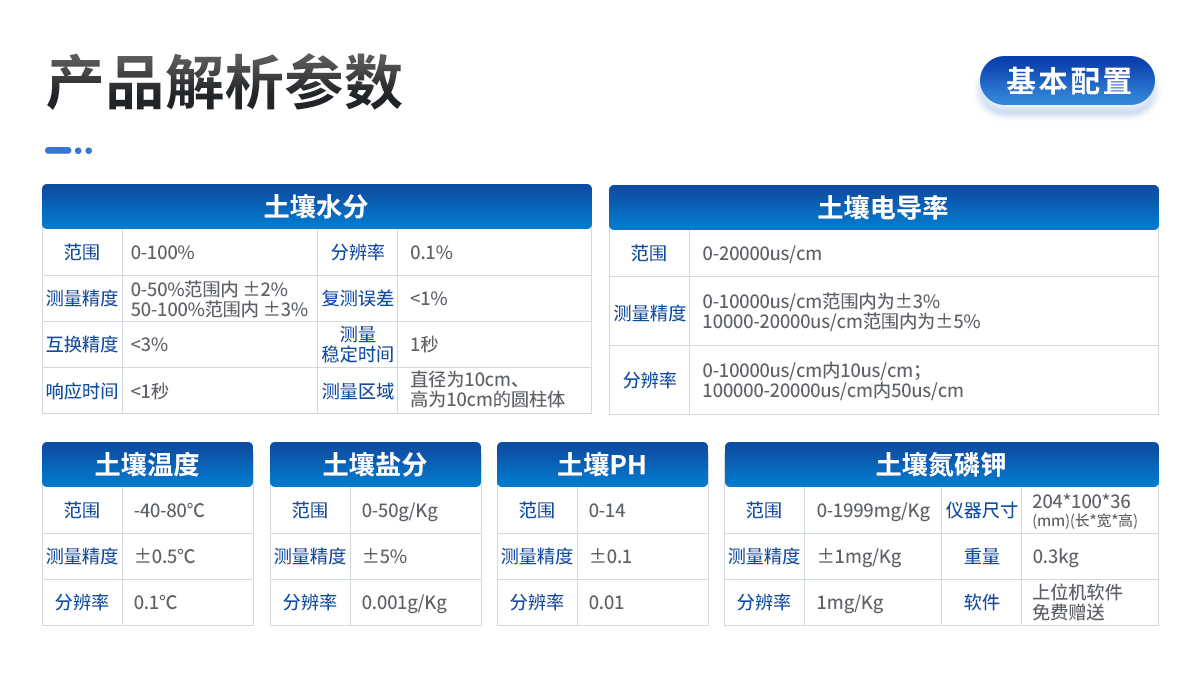 | 測(cè)量范圍:0-20ms/cm 測(cè)量精度:±1% 分辨率:±0.01ms/cm 輸出信號(hào):0~2.0V | 互換精度:< 2% 復(fù)測(cè)誤差:< 1% 工作溫度范圍:-40℃~85℃ | 電導(dǎo)率溫度補(bǔ)償:內(nèi)置溫度補(bǔ)償傳感器,補(bǔ)償范圍0-50℃ | 測(cè)量原理與測(cè)量方式:土壤電導(dǎo)率交流電橋法 | 土壤原位插入土壤或浸沒入培養(yǎng)液、水肥一體營養(yǎng)液中直接測(cè)試 | 防護(hù)等級(jí):IP68浸沒水中可長(zhǎng)期使用 | 運(yùn)行環(huán)境:-40~85℃ | 探針材料:防腐特制電極 | 密封材料:黑色阻燃環(huán)氧樹脂 | 安裝方式:全部埋入或探針全部插入被測(cè)介質(zhì) | 默認(rèn)線纜長(zhǎng)度:2米,線纜長(zhǎng)度可按要求定制 | 連接方式:預(yù)裝冷壓端子 | 外形尺寸:45*15*145mm | 電極長(zhǎng)度:70mm | 供電方式:鋰電池供電、交流電兩種方式 軟件:上位機(jī)軟件免費(fèi)贈(zèng)送 |