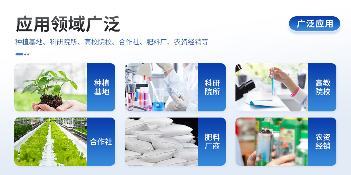 | 土壤:● 有機質、酸堿度(pH試紙法)等; | 肥料:● 單質化肥中的有機質; ● 復(混)合肥及尿素中的有機質; ● 有機肥中有機質; | 植株:● 植株中有機質。 |
