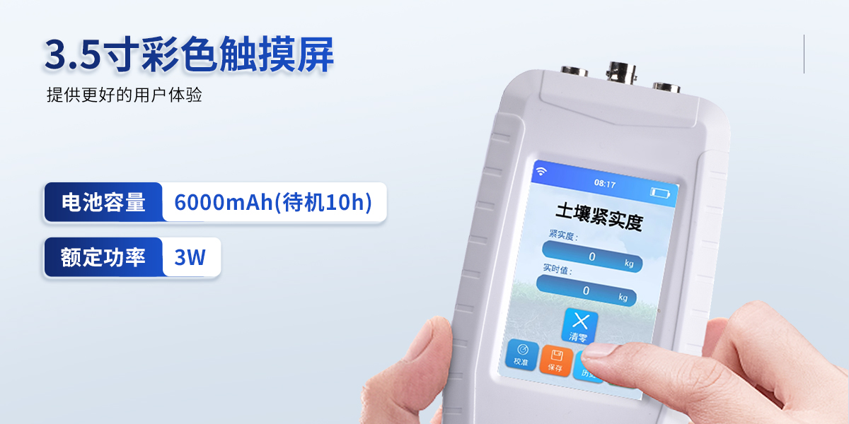 土壤緊實度由土壤抗剪力、壓縮力和摩擦力等構成。是土壤強度的一個合成指標。金屬柱塞或探針壓入土壤時分動載和靜載兩種方法,不同方法的測定值不同,但有聯系。柱塞的形狀有錐體、平頭、圓球及楔子等,這些對測定值也有影響。對同一種方法的測定值,主要決定于土壤質地、容重和含水量。其中含水量的影響**。土壤緊實度可預測土壤承載量、耕性和根系伸展的阻力。土壤緊實度的大小可影響作物根系的穿孔和生長,是一個重要的土壤物理特性指標,用于評價土壤耕性。緊實的土壤可阻止水分的入滲,降低化肥的利用率,影響植物根系生長,導致作物減產。